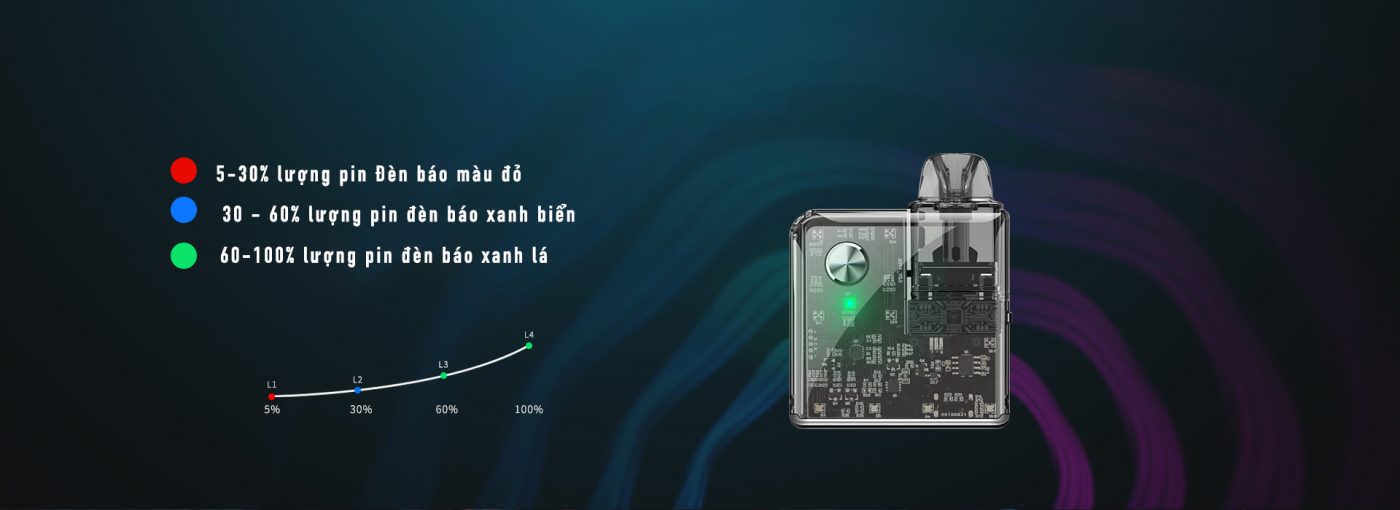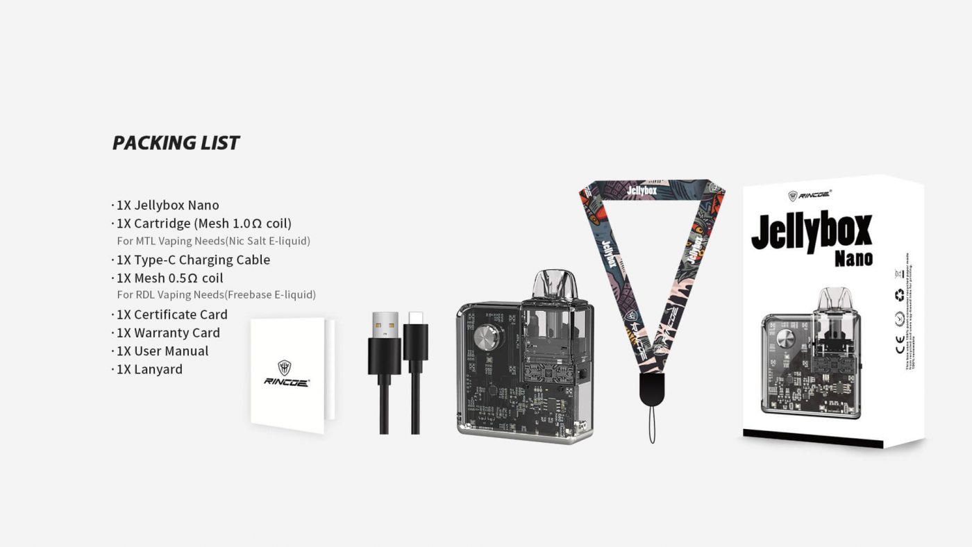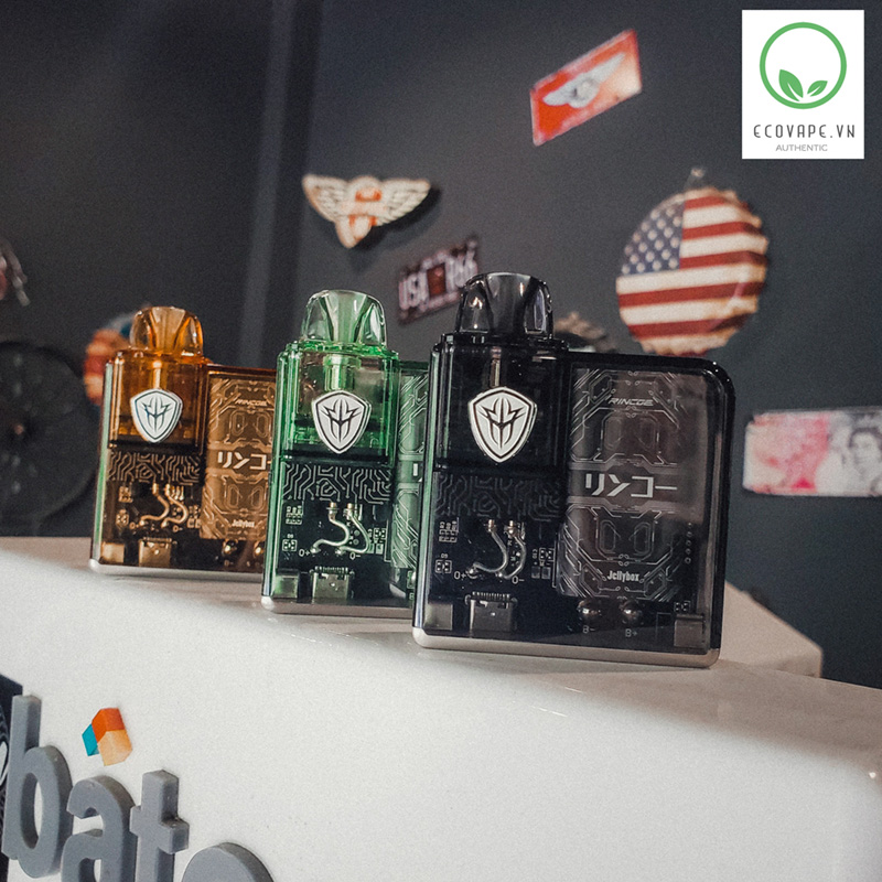 Với chất lượng và vẻ ngoài siêu ngầu, Rincoe Jellybox Nano Pod Kit duy trì một thiết kế của đàn anh Jellybox với thiết kế lớp vỏ trong suốt nhìn xuyên thấu bên trong, kèm theo hiệu ứng đèn LED phát sáng khi bạn vaping nó.